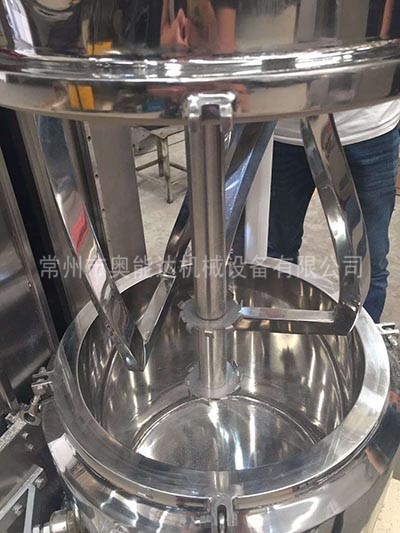 行星分散混合機(jī)有高速、低速、活動(dòng)刮板作攪拌、剪切、刮壁、溶解用。低速運(yùn)轉(zhuǎn)的攪拌錨使物料在密 閉容器內(nèi)上下翻動(dòng)、剪切和混合,高速運(yùn)轉(zhuǎn)的齒形分散盤(pán)與混合的物料產(chǎn)生強(qiáng)烈的碰擊和剪切,隨著攪拌錨的旋轉(zhuǎn),行星架上的活動(dòng)刮刀隨著旋轉(zhuǎn),把釜體上的物料完全刮掉,使聚集物完全、徹底地達(dá)到混合、分散、溶解的要求。在其高低速的不同作用下,使物料能夠達(dá)到均勻的混合和分散。